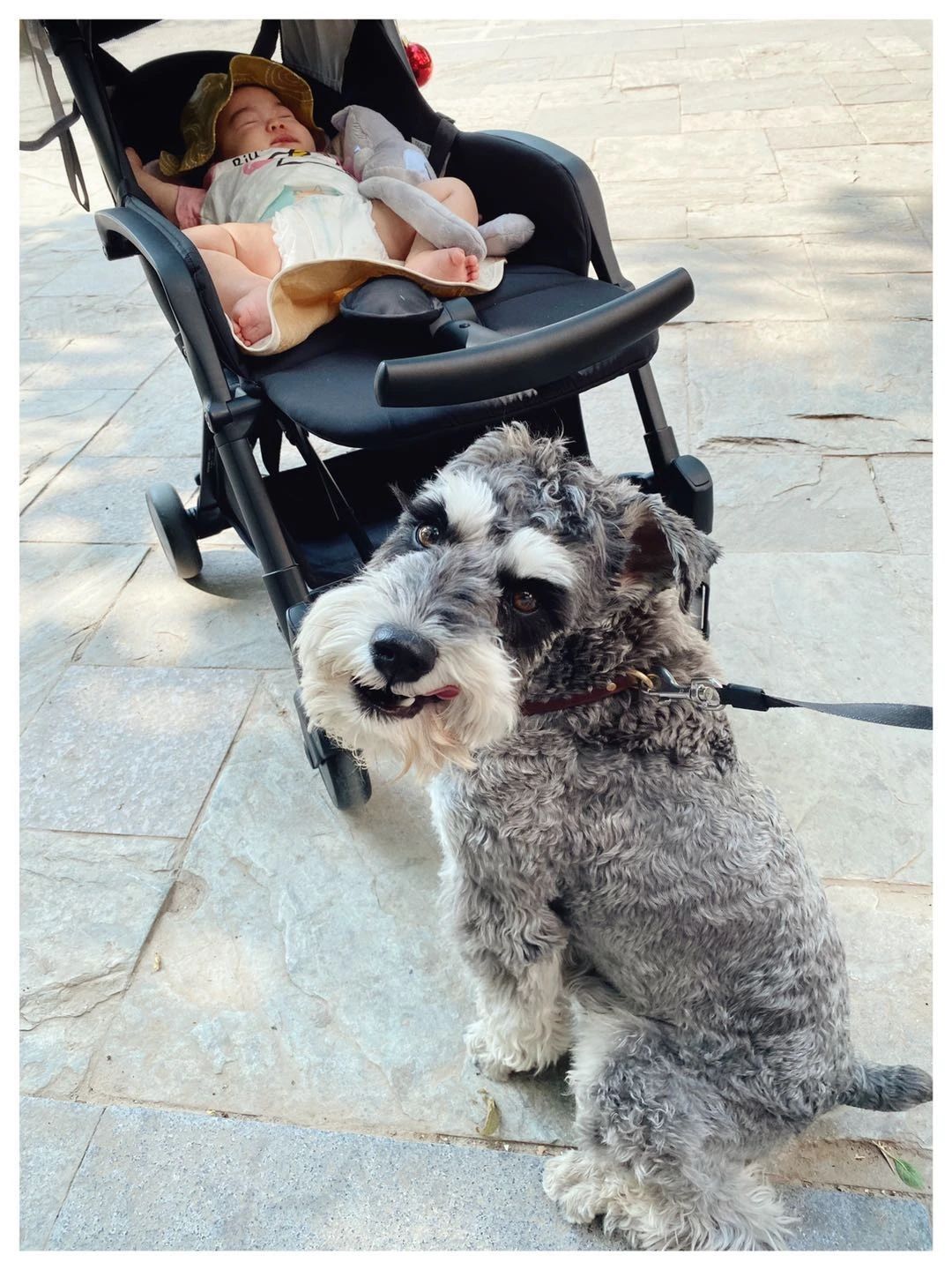 让宠物和宝宝一同长大是一件非常幸福且治愈的事情。虽然一开始狗子会吃我家人类幼崽的醋——每次我抱宝宝的时候,狗子就会跑过来蹭我,用脑袋顶我的手要我抱他。但随着时间的推移,当他慢慢接受自己在家中地位下降的现实后,他就开始帮我带孩子了。狗子知道在宝宝的睡觉的时候,安安静静地趴在她的床边陪她觉觉。出门溜娃遛狗时,我们停下休息,他就乖乖坐在婴儿车边上守护着妹妹。