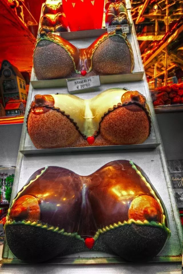 除了丁丁形状的,比利时巧克力店可以说把“食色性也”贯彻到了极致,还有欧派造型的巧克力、妹妹造型的巧克力。这些“被滋阴补阳”和“被生殖器化“的食物,它们被喜爱的原理很简单,都是源于人类对于性生生不息的热情。