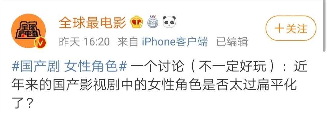 在男性视角下的国产剧女性角色,少了一份她们自己的魅力。恕桃子直言,这样的女性角色,我不喜欢。