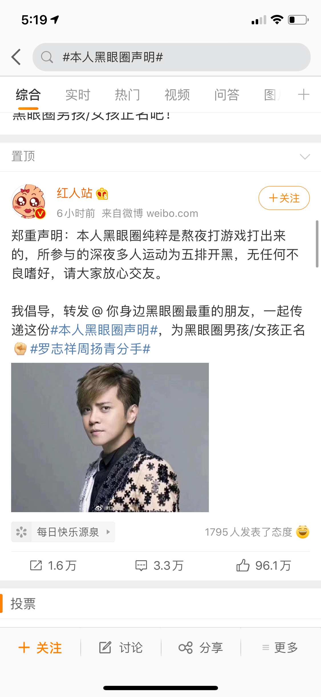 网友们推测罗志祥的黑眼圈应该就是纵欲过度的成果,于是开始纷纷解释自己的黑眼圈以示清白,甚至玩起了接力游戏: