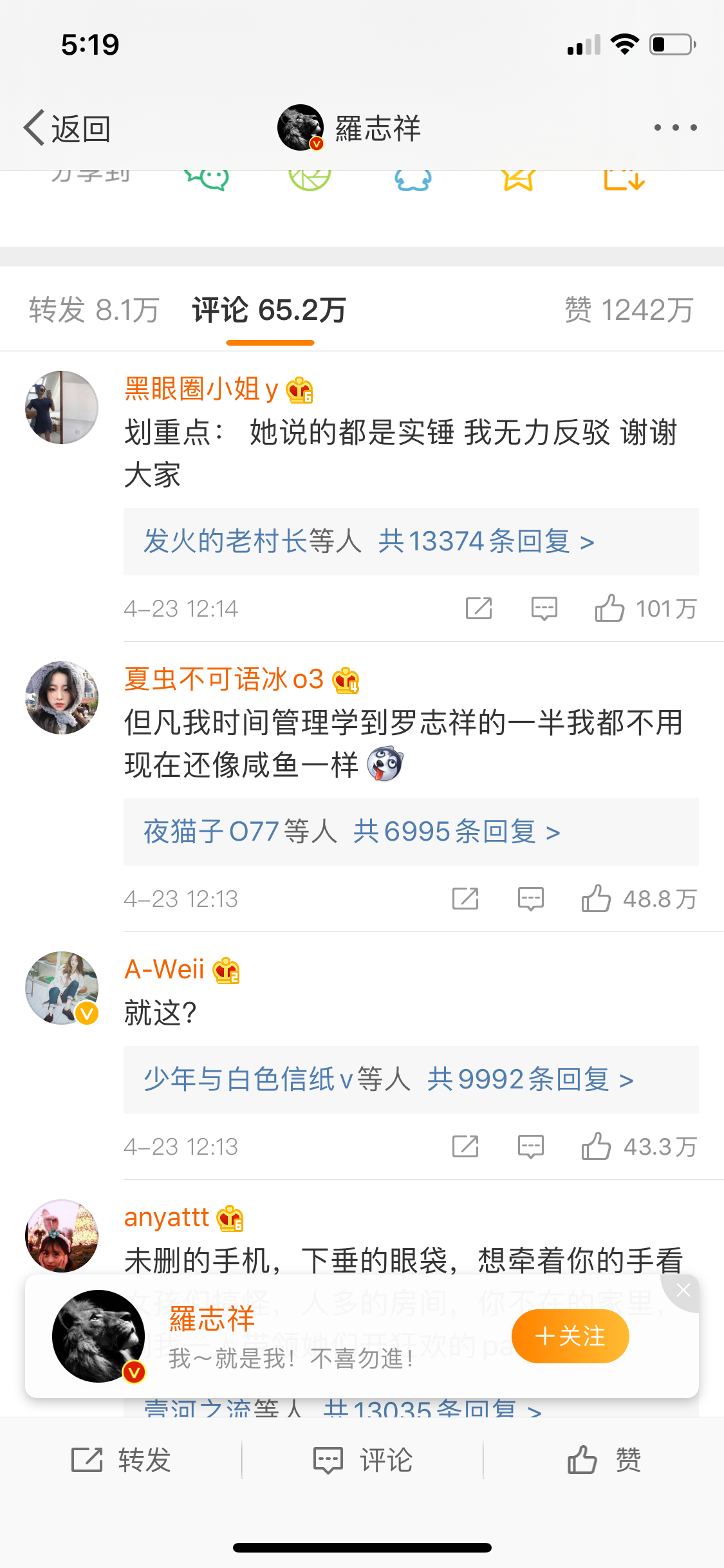 本次吃瓜才艺比拼大赛最优秀的环节来了。网友们和周扬青发出了同样疑问:“为什么罗志祥每天赶通告,聊到凌晨三四点还能继续乱搞?”答案只能是——罗志祥是个时间管理的狠人。大家纷纷调侃如果自己有罗志祥的时间管理能力也不至于是个咸鱼。