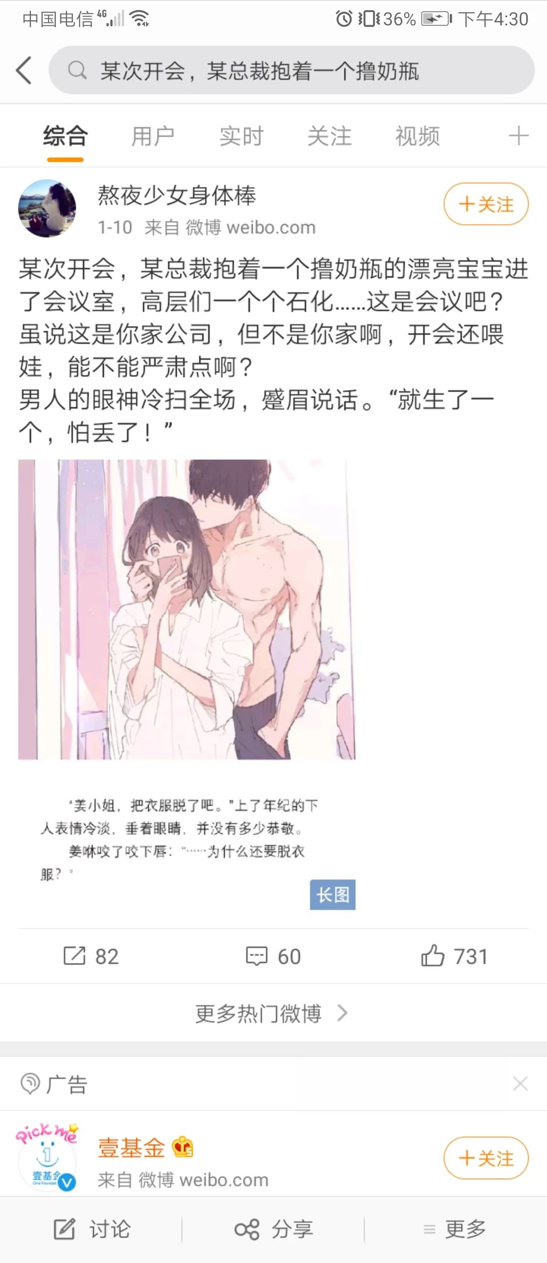 不能否认,微博推荐的霸总文艺作品水平参差不齐,但大多数乍一看还是有点吸引力的。甚至还有人评论“实在是太上头了”。那么,微博推荐的霸道总裁文学作品为什么会吸引人呢?一是因为博主选的引导文案很绝。例如男主伏在女主耳边,声音低沉地说:“为何我会把持不住”,又例如男主给女主种草莓然后再配上一个有些暧昧的图↓
