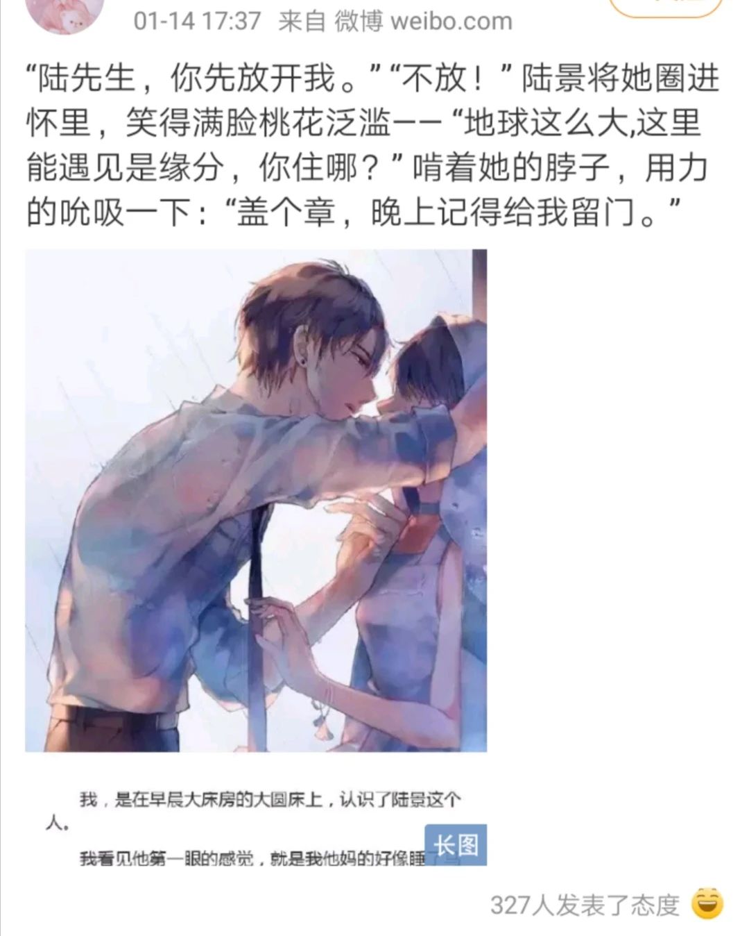 于是我满怀好奇看了下去:女主救了男主,给男主挖子弹,男主心想:“如此特别的女人,似乎比那些个庸脂俗粉要好多了。”我转念一想,这不是像极了“女人,你成功地吸引了我的注意力”吗?我问了问身边的朋友,果不其然她们都有被微博推荐过类似的霸道总裁风博文。于是我总结了一下它们的共同属性,诚邀大家共赏。霸总式虎狼之词