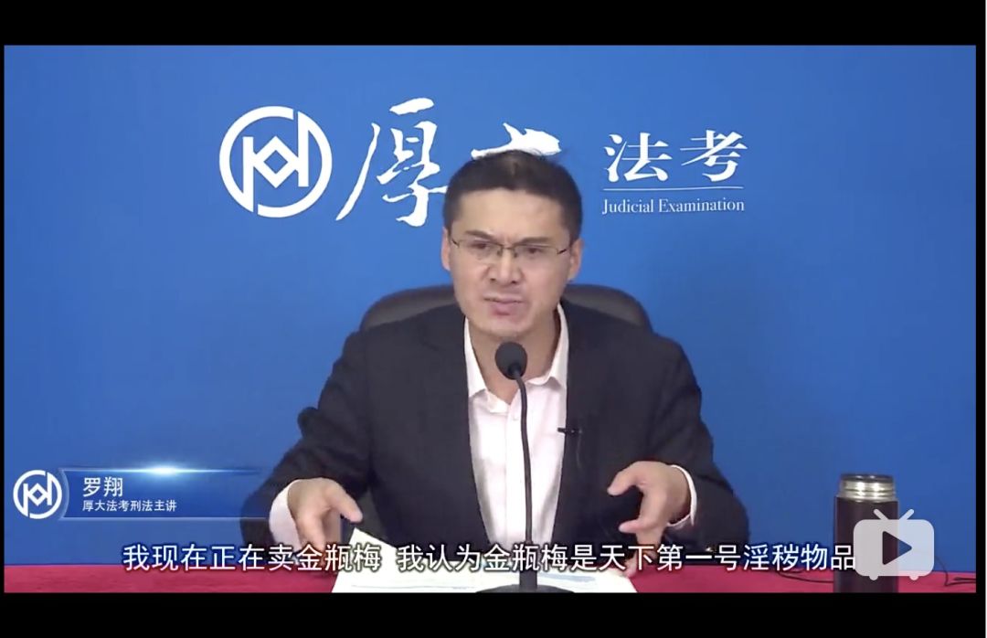 但是,他并不构成犯罪…这就非常奇特了。随后,罗老师就开始解释。《金瓶梅》到底是不是小黄书,卖它算不算犯罪?这个问题在不同历史条件下的答案不同,但至少在今天,我们社会主流价值观认为金瓶梅是淫秽物品还是艺术品?是艺术品。
