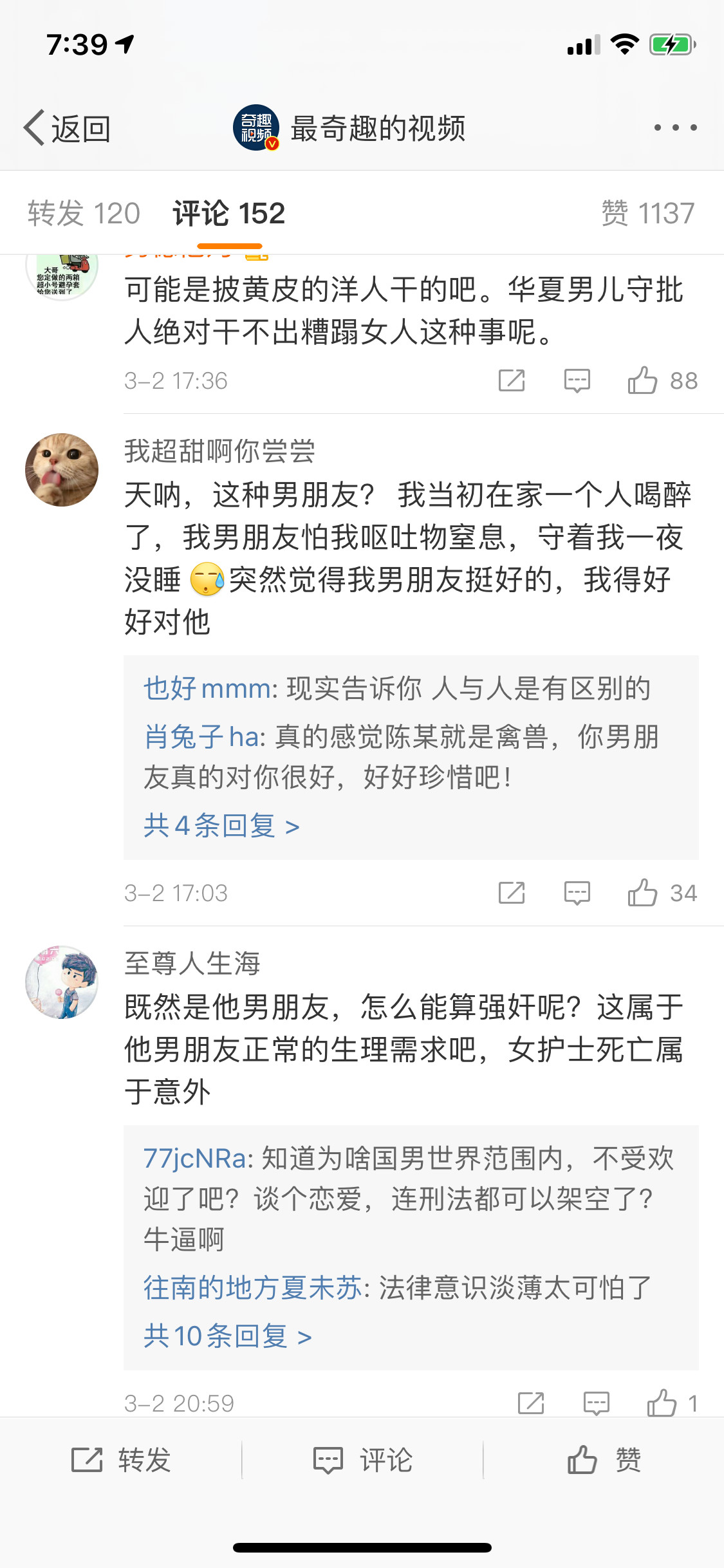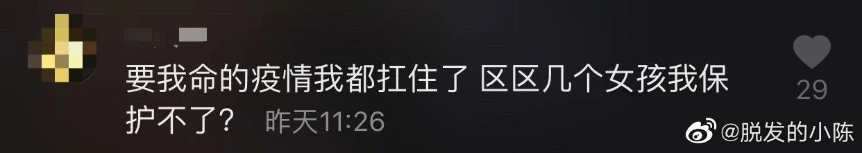 别看“中华魅力男性”这次如此热血叫嚣着保护中国女孩,但平时暴力、骚扰、中伤女性的也是他们。当出现强奸、家暴事件时,他们常常第一反应都是——“女方是不是穿得很骚?”“女方是不是出轨了?”“男方是不是被仙人跳了?”...让我们来感受下评论区