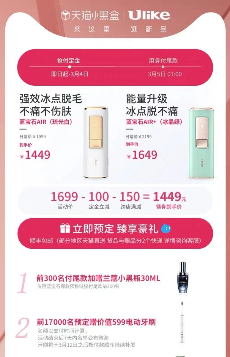 而Ulike蓝宝石脱毛仪呢?单价看起来很高,要1699元。但是相比之下,其实性价比非常之高,并且相当于“永久脱毛”+“永久美白嫩肤”啊。