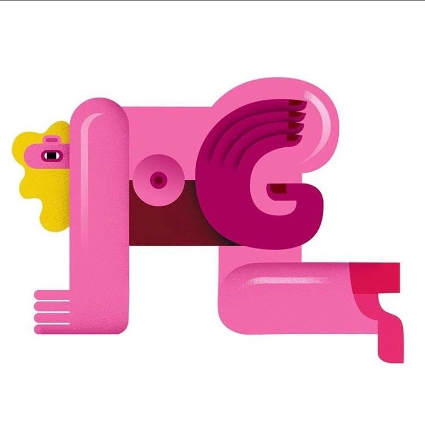 区别于写实的肤色,Maria Corte选择用糖果般的明亮粉色描绘人的躯体。这种以粉色为主的表现形式让作品少了冒犯、轻浮之感,增添了几分新潮简洁的风格,成为了一组凝练又好看的抽象符号。