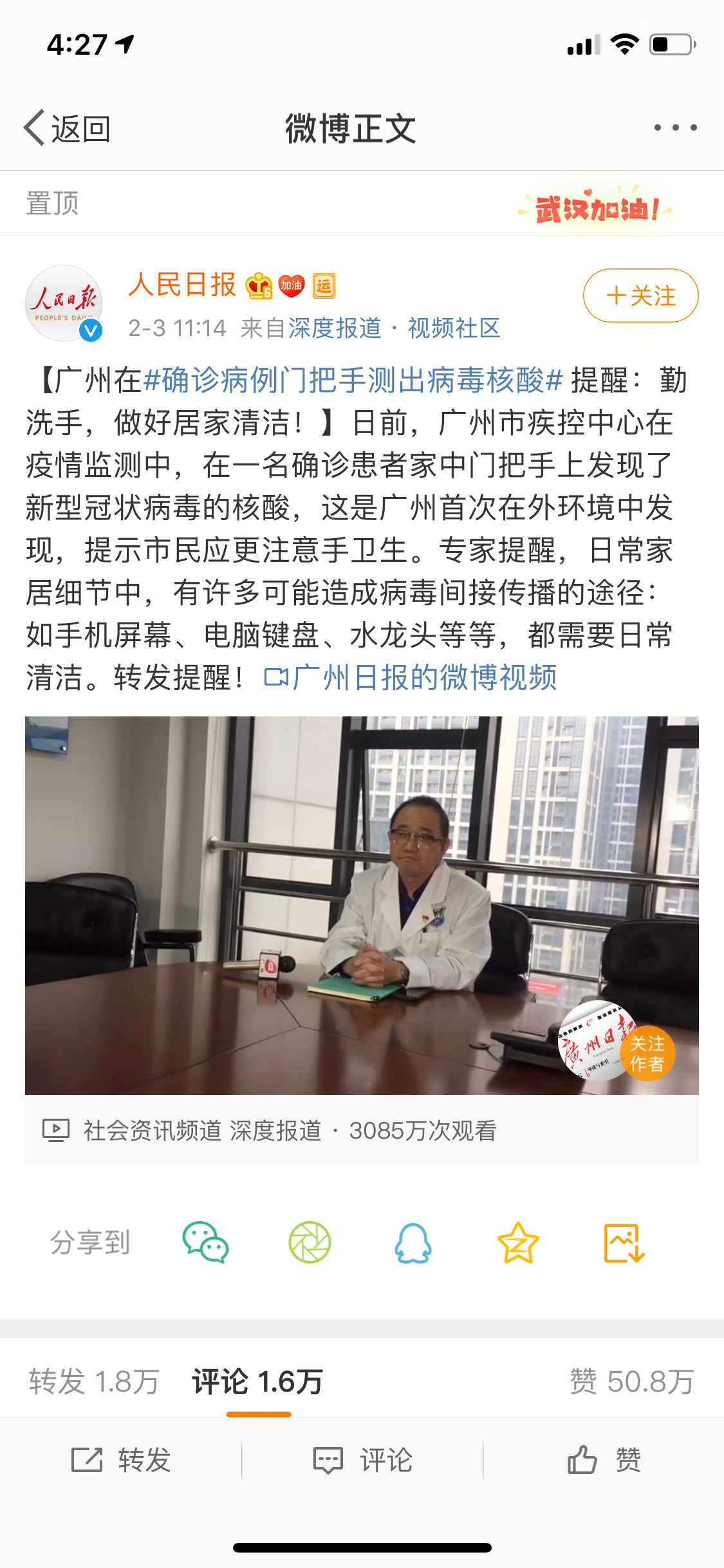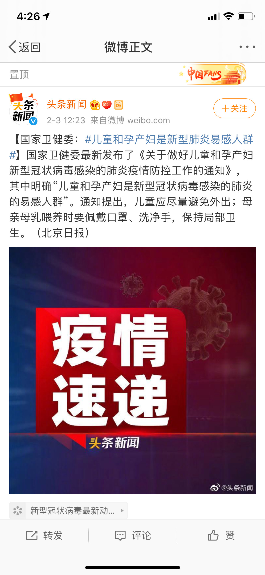 https://m.weibo.cn/3141296113/4464622004144985据人民日报消息,广州首2例新型冠状病毒感染儿童30日下午从广东省人民医院感染科治愈出院。两例患儿入院后,医院给予针对性治疗,经过专家多次会诊讨论及修订治疗方案。在医护人员精心护理、治疗下,患儿体温正常3天,病情明显改善,连续2次核酸检测均转为阴性,经专家会诊,达到出院标准,给予出院。2.17家物流平台联合行动,为武汉物资运输调动运力4.好消息!科研人员发现:3种药物对病毒有较好抑制作用据人民日报消息,28日,一系列好消息从中国科学院武汉病毒研究所传出:该所刚研制出了用于研究的抗体检测试纸;同时,该所与军事医学科学院毒物药物研究所联合发现了在细胞层面上对新型冠状病毒(2019-nCoV)有较好抑制作用的雷米迪维或伦地西韦、氯喹、利托那韦等三种“老药物”。其后续的临床使用,正在走相关程序报批。只要输入日期、车次和地区等信息,即可查询到对应行程是否与已披露的确诊患者同行,进而科学应对,早预防、早隔离、早救治。http://2019ncov.nosugartech.com/search.html1.急寻同乘人!以下这些车次,发现确诊患者!请注意!这些乘客也请注意!你所乘坐的公共交通上出现了确诊/疑似病例(截至1月27日14:00)这是截至今天,收集到的信息覆盖包括武汉在内的17个市、累计106家医院,还包括湖北省外8个省份11家医院经核实后汇总信息。恳请社会各界通过正规渠道向医院捐赠符合或高于国家标准的防护物资!戳