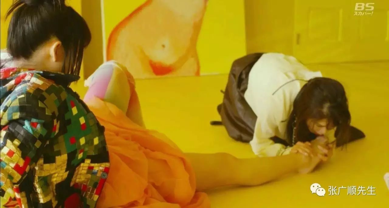 典子是京子的经纪人,三四十岁的样子,因为觉得自己属于老师,所以对京子百般顺,京子也喜欢对典子百般羞辱,让她四肢朝下下跪学狗叫,爬行,鞭打,让典子给她舔脚。