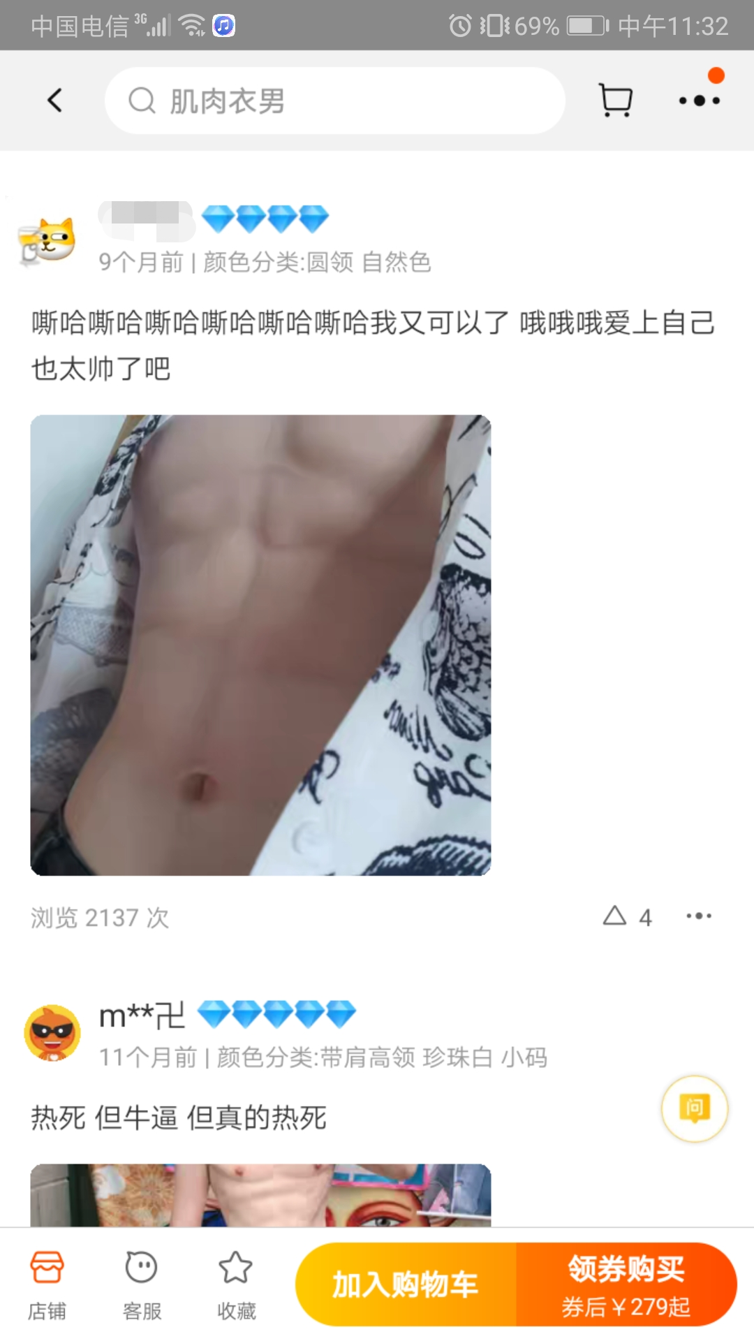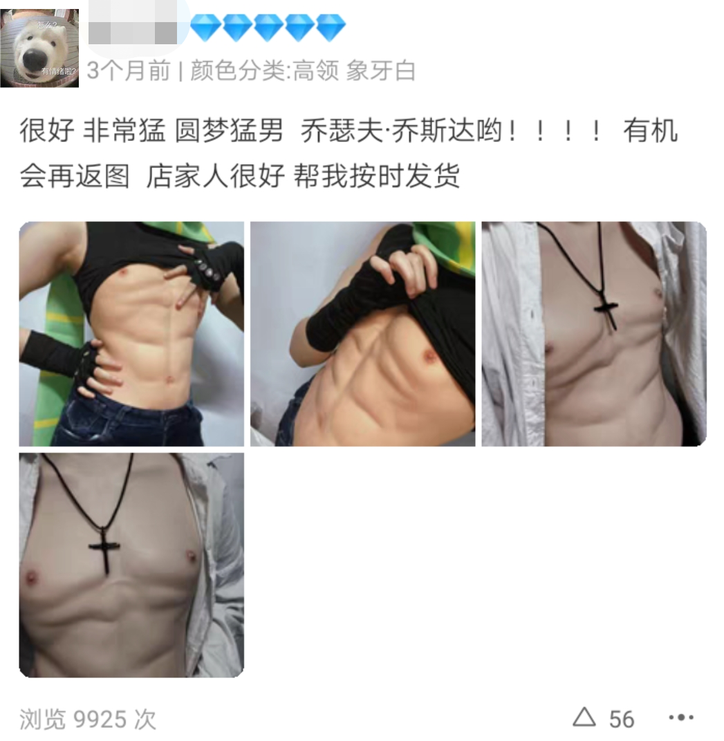 正如有些店铺自己打上的title——圆你猛男梦。有些男顾客买来肌肉衣就是圆梦的。