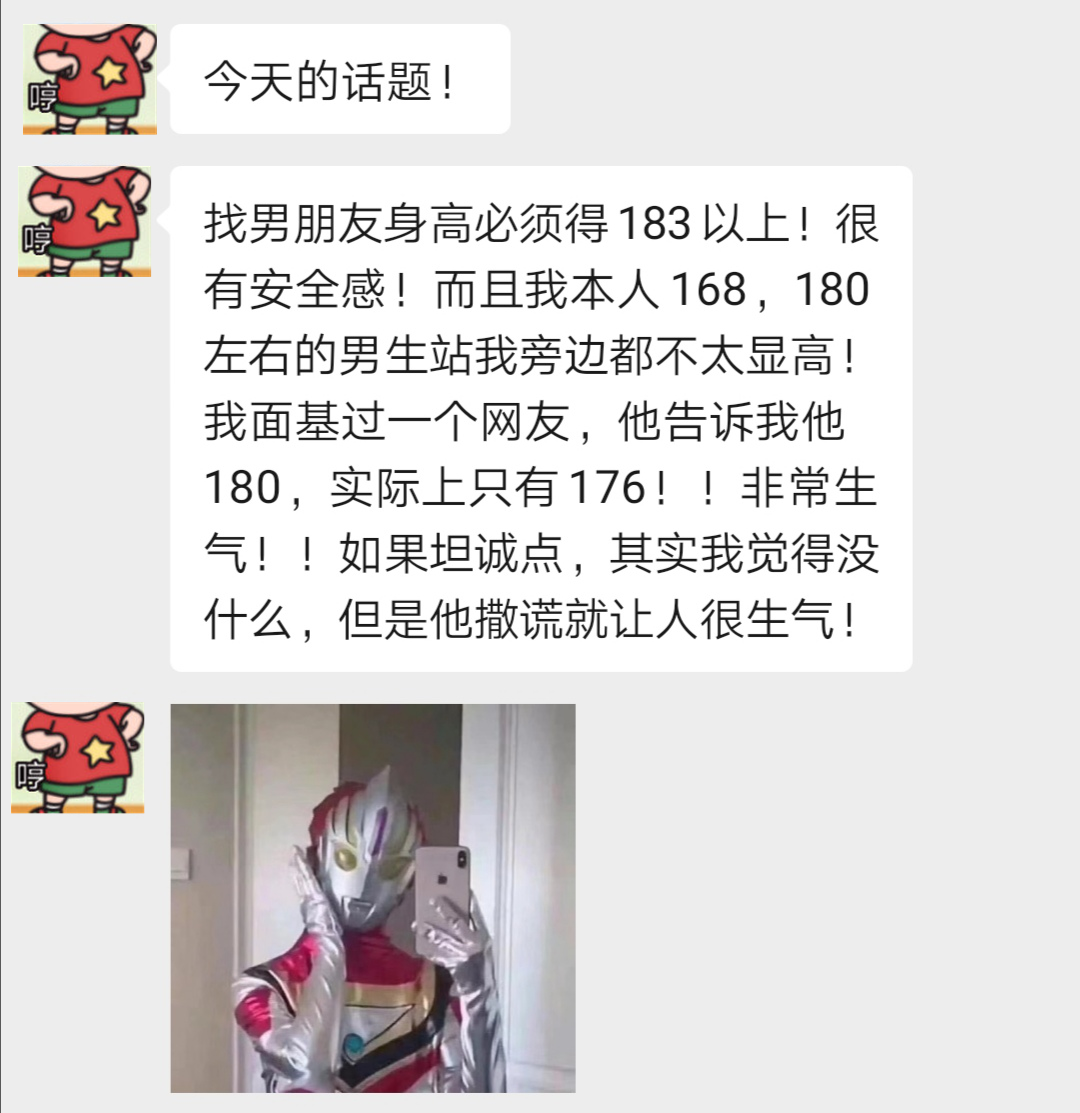 ?♂️小B:额…目前还好,校园里还没有社会上普遍对男生身高那么高的要求~虚报一下身高,还能勉强糊弄过去,小姐姐们也不会在意啦~毕竟,心意相投的两个人,身高这件事吧,别差太多就行,你说对吧?