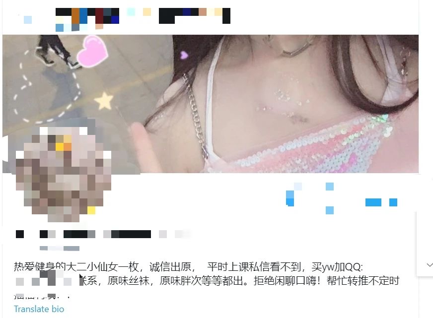 他们会在主页营造出各种引人注目的人设,然后通过发动态的方式吸引相关群体,再通过其他可以转账的平台进行交易。