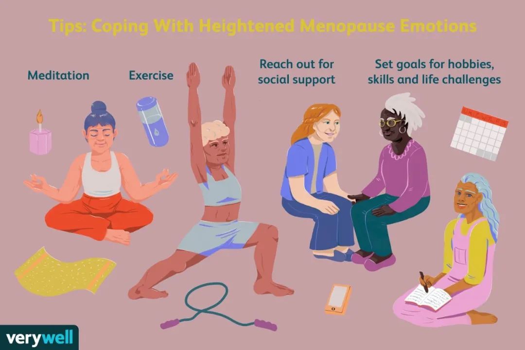 当一个人每天每夜都被这么多不适困扰,对突然出现的变化感到不安,她的心情肯定不会太好。当这样的状况持续数年,她在你的眼中就变成了“不讲道理的泼妇”。透过每天的争吵,大大小小的委屈,我们还是要看到这背后“她”所经历的苦楚呀。其实只是不够了解罢了,减少不适的原理很简单:缺乏雌性激素就进行补充和调节。补充激素疗法在国内外都已经得到了广泛的运用,很多医院的妇科甚至专门开设了更年期门诊。如果更年期的相关症状已经影响到了正常生活质量,不妨带你身边的女性去正规的医院咨询一下。这里要强调,使用激素疗法必须严格遵医嘱,不可以擅自服用。因为过量的雌性激素会导致乳腺癌、卵巢癌等疾病的发病率上升。除了看医生之外,在日常生活中也有许多我们能做到的:尽量包容她们的脾气。要明白这些怒火并不是针对你本人,只是激素的影响。作为一个成年人,应该有很多避免冲突升级的小技巧吧,只要躲过了那一阵邪火,妈妈们也不想继续朝你发飙的。适当的运动锻炼。锻炼不仅可以缓解轻度到中度的抑郁情绪,还能缓解不安和恐惧。同时,这也可以避免肥胖,缓解骨质流失。针对盆底肌群的凯格尔运动可以增强阴道肌肉,改善膀胱的控制力,从而减少漏尿的状况。健康的饮食习惯。多吃水果蔬菜和全谷物,少吃饱和脂肪。每天吃三种或三种以上富含钙的食物,并且注意补充维生素D。在这个时期,豆制品是一个不错的选择,它不仅可以补钙,还能在一定程度上促进雌性激素的分泌,所以明天早上就可以给妈妈买杯豆浆呀~改善睡眠质量。养成有规律的睡眠时间,减少咖啡因和酒精的摄入,因为这些都会扰乱中枢神经的运作;避免蓝光的照射,关闭手机、电脑等发出蓝光的屏幕;在凉爽、安静且黑暗的房间入睡,换上宽松透气的睡衣,这些都能让人睡得更香,精神更好,缓解大脑的疲惫。其实总的来说,更年期就像一个迅速衰老的过程。男性和女性变老的方式是不太一样的:男性衰老的周期更长,更匀速;而女性则是在一个时期内发生许多变化,但在其他阶段衰老得更慢些。这些集中起来的变化是那么突然,那么令人不知所措、不想面对。我们都在说每个年龄的女人都有自己的美,但谁又不想青春永驻呢?因此,作为子女的我们可以在这个特殊的阶段,支持鼓励妈妈尽量舒适地走过过渡期。作为女性的我们应该提前了解这个时期,做好心理准备,坦然又从容的去面对一系列变化。