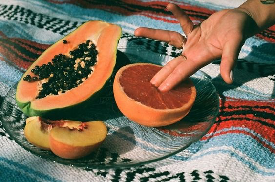 与大方袒露自己身体的果子们不同,加了马赛克的水果,会变得更加邪恶。当香蕉被加上纯黑长方形的马赛克…是会被妈妈捂住眼睛不让看的程度。看似和“不正经”仨字没什么关系的哈密瓜,也会因为马赛克的出现而被看成有些外扩的胸部。(p.s.外扩是正常现象哦)熟透了的木瓜和体内有个大核的牛油果长相很类似,只不过一个多汁鲜嫩,一个质地绵密。两大水果之王的苹果和梨,看起来很是正经,就像两位从来不出错的中年领导。但当它们接触的部分被打上马赛克,暧昧层次瞬间上升几个度,让人浮想联翩。毫无疑问,青春期时水润的水果会得到大多数人的青睐。不过当它们脱水变干,比如像这片柚子皮一样步入老年期之后,也能凭借沧桑却耐人寻味的外形和年轻水果们来一场正面battle。果真是纵使水果长得再纯洁,只要有一双lsp的慧眼,都能get到其中的满满内涵。单独出现在摄影中的水果就已经让车速飙到120码,而当人体与水果相加,诞生的作品就更更更带劲儿了。樱桃是和尤物身体结合最好的水果之一。将一颗颗桃红色的樱桃咬破,汁水爆开,沿着嘴角慢慢淌下浅粉色的果汁。除了“樱桃小口”外,人类将“樱桃”和“口唇”联想到一起,都能在《旧唐书》中寻觅到踪迹。《旧唐书·中宗纪》中曾写道:“夏四月丁亥,上游樱桃园,引中书门下五品以上诸司长官学士等人芳林园尝樱桃。便令马上口摘,置酒为乐。”也就是说在这天,皇上和大臣们一起在樱桃园游玩,看到院子里的樱桃已然成熟,皇上便命令“口摘”。所谓“口摘”的意思,就是直接用嘴巴含住枝头的樱桃。另一类常被指代美人的水果,就是同属于芸香科柑橘属西柚和橙子了。它俩有着相似的外表,并且外皮的颜色都颇为鲜艳。用手指碾过被切成两半的橙子,或将一整个西柚的汁水全部榨干…和他们类似的还有黄桃,黄皮红芯,成熟后咬上一口就是满满的桃汁。如果用手指将一只黄桃捏烂,那散发着甜腻气息的果汁便会沾湿指尖。哪怕是平平无奇的番茄,也能因为手指的揉捏而平添一丝情欲的感觉。或者这样,情侣间同吃一颗草莓。其实并不是为了吃到那颗草莓,而是为了吻上你的唇。和小巧可人的水果不同,西瓜算得上是个“庞然大物”了。但西瓜放置于两腿之间,吃掉一小部分,留下大部分,是女孩子独处时一个人的洒脱自在。人们喜欢把水果和少女联系到一起,因为她们仿佛就是甜美和幸福的代名词。被相机记录下的水果们展现着独一份的性感,而在另一位美国图形画家和漫画家MariNaomi姐姐的画笔下,水果们的情欲变得更加生动且有趣。- MariNaomi姐姐 -