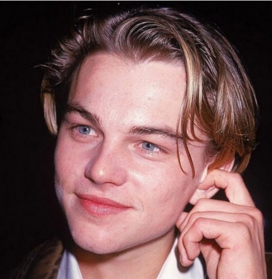 比如年轻时的小李子(莱昂纳多),顶着一头半湿不干的头发就一点不显油腻,配上他浅浅的瞳孔,甚至更让人被他身上脆弱的美感吸引。