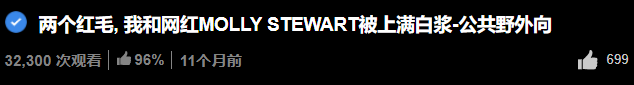 如Ryan的《两个红毛,我和网红MOLLY STEWART被上满白浆-公共野外向》一片中,既用到了第一点里的场景关键词“公共野外”,又用到了数量词“两个”和主人公特征“红毛”,让lsp们知道点开这个视频可以看到两位红发系动作明星。