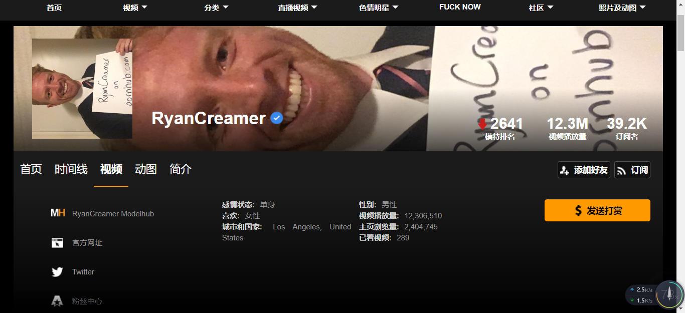 这位博主叫Ryan Creamer,是P站最有益健康的认证创作者。