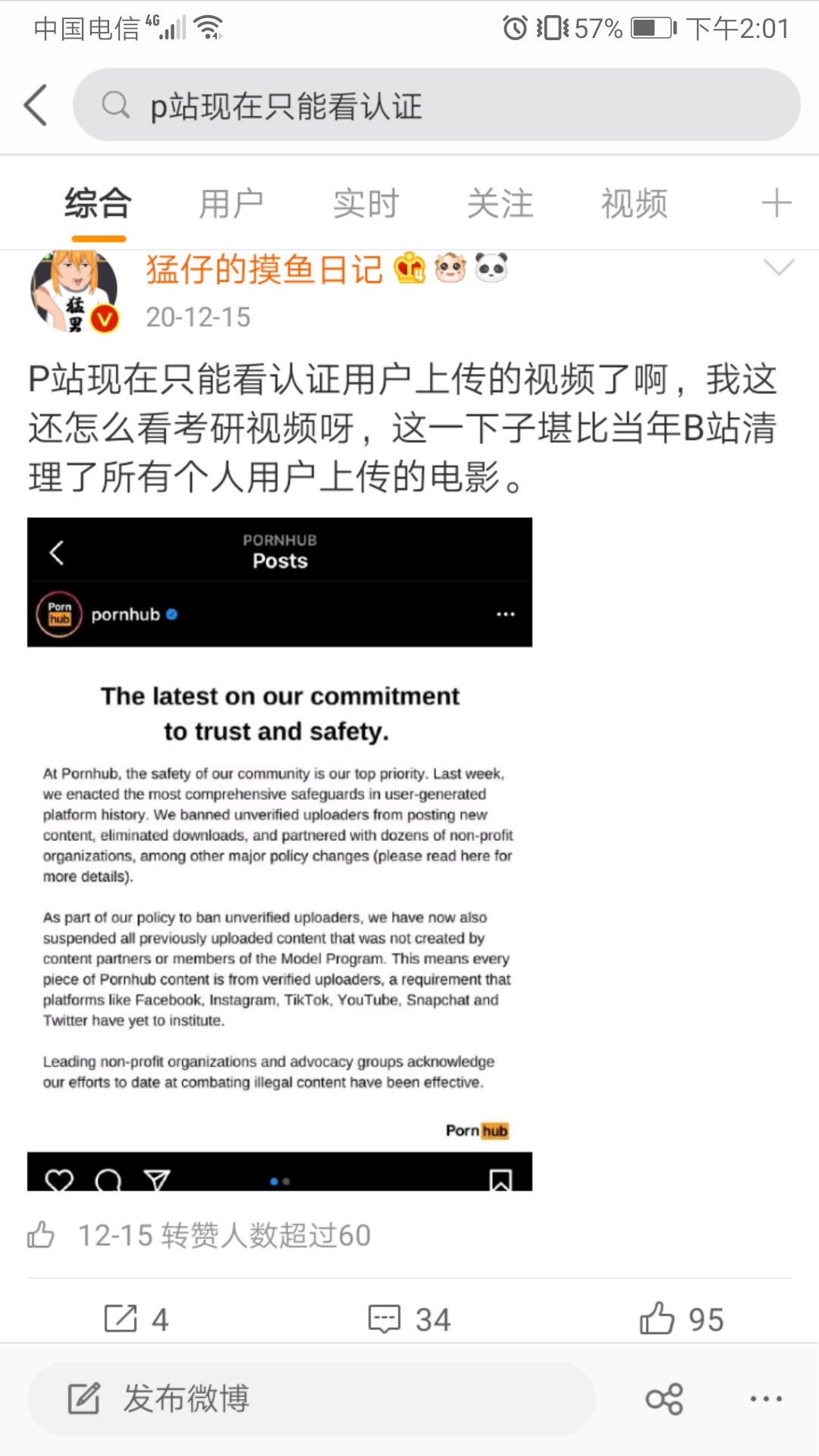 去年12月中旬, Porn hub 下架了所有非原创视频。P站没有了法外狂徒张三,没有了考研数学,留下的只有“原汁原味”的黄色视频。伴随着收藏夹的缩水,无数人心碎太平洋。
