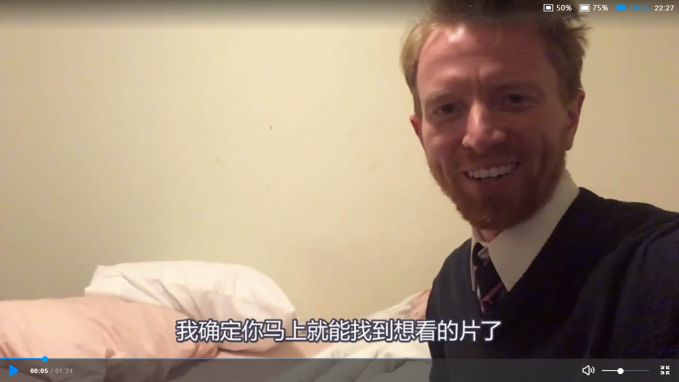 在一个名为《我来给正在找片的你加油打气-励志向》的视频里,Ryan一本正经地在床边对着镜头说,“你好啊,不用担心,我确定你马上就能找到想看的片子了”,一边露出他标志性酒窝咧嘴笑。