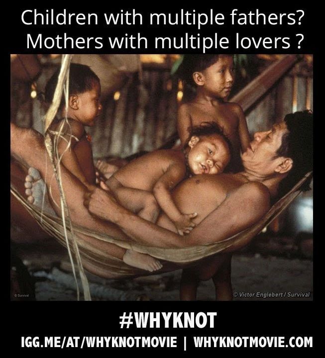 黑猩猩和倭黑猩猩在发情期时每小时可以交配1-4次,每天可以选择和数十只雄性进行交配。在这种情况下,精子质量的竞争更加激烈,更能筛选出优良的基因。一段遗传物质需要在数位雄性提供的数十亿精子中脱颖而出,才能得到构成新生命的机会。比起自己的近亲,智人可能有过之而无不及,因为黑猩猩有40%的时间是可以交配的发情期,倭黑猩猩有90%的时间,而人类则是独一无二的随时可以进行造人作业的生物。除此之外,人类男性的生殖器官在灵长类动物中也是最大最强壮的。关于这种不可思议的性生活形式,我们身上还有更多生物学角度的证据。比如在自主性生活中,女性的声音通常比男性音量更大,这在远古时期可能是一种吸引交配的方式。再比如说,比起男性一次结束后即进入贤者时间的模式,女性则可以不停歇,这也有助于多人运动的进行。除了这些生理结构方面的证据,许多人类学家的研究也证实了这种两性关系的可能性。在亚马逊丛林中,70%的部落仍然保留着一种叫做Partible paternity(没有官方翻译,暂译为共享子嗣)的文化,简单来说就是一个孩子有不止一个父亲,突然感觉段子成真了。在他们的文化中,经过多次性关系,男性的遗传物质在女性体内积累,最终就会形成胎儿。因此当一个女子想要怀一个孩子的时候,就有可能找最强壮的来下,再找最聪明的来下,再找最能赚钱的来下…以保证孩子品质优良。而当这个孩子诞生,所有提供遗传物质的男性算都是爸爸。