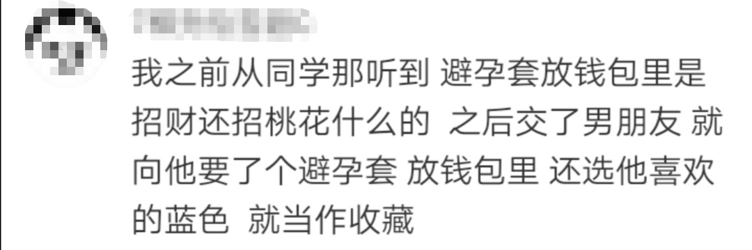 前两天,桃子偶然间看到朋友钱包里有个套套,就调侃他居然随身带套,他也没遮遮掩掩,告诉我“把套套放在钱包里,能招财”。