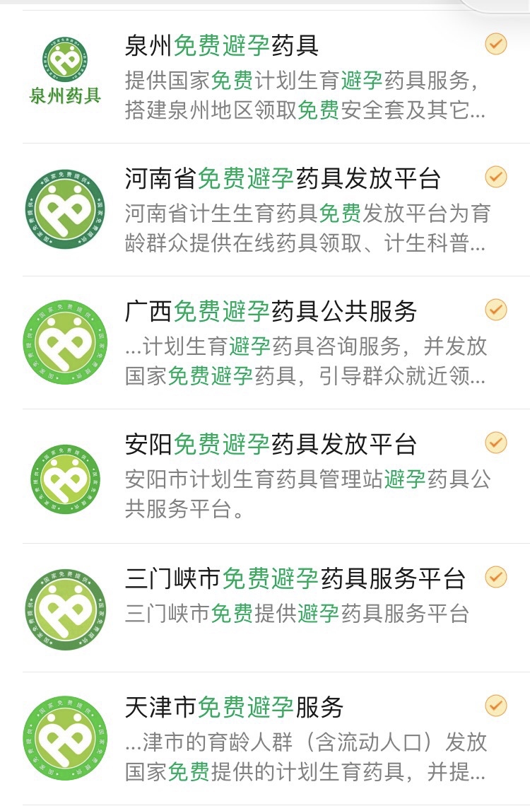 于是桃子就尝试了一波。首先,你需要关注一个公众号,基本上按照你所在的省/市/自治区+免费避孕搜索就可以啦。