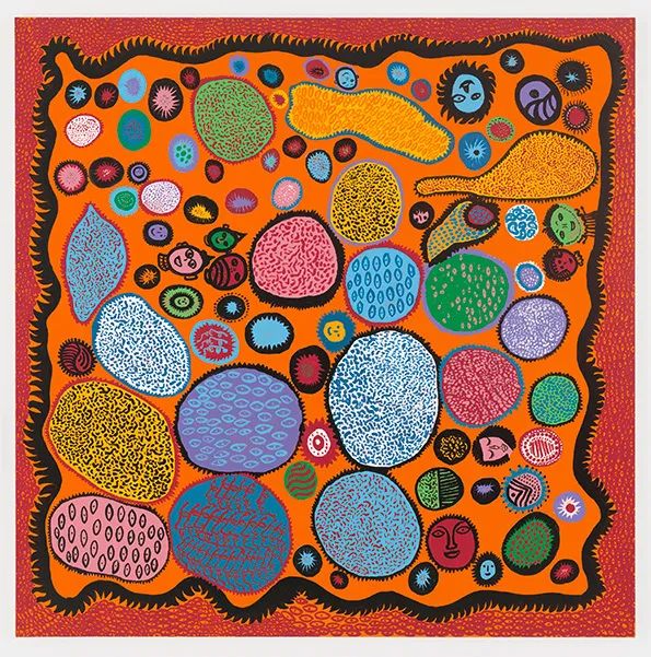 草间弥生在青少年时期便出现幻听和幻视,经诊断是精神分裂症,她感觉到花鸟鱼虫在跟她说话,她的世界也被数不完的圆点包围。
