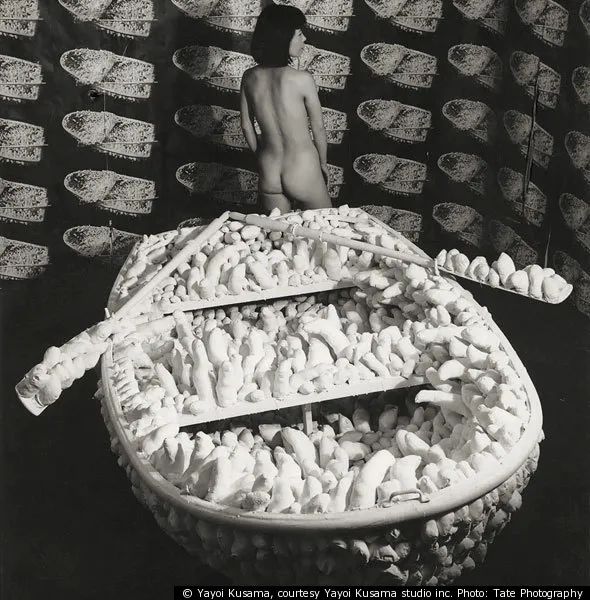 1960年代的纽约,正值艺术的黄金时代,各种风潮与主义涌现,性解放运动也悄悄地萌芽。受到先锋派的影响,草间弥生决定用她的作品定义前卫,于是 “羞耻的“accumulation 系列诞生了。