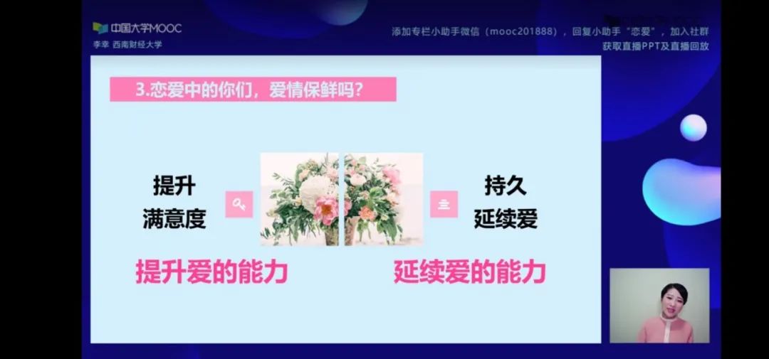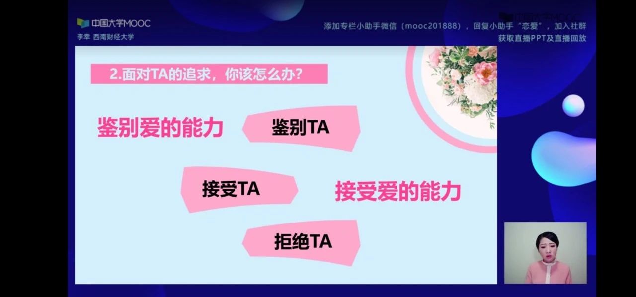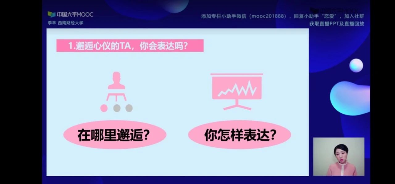 说起恋爱,老师始终充满着积极的态度;谈到大家的留言,老师甚至还说可以线上约会。