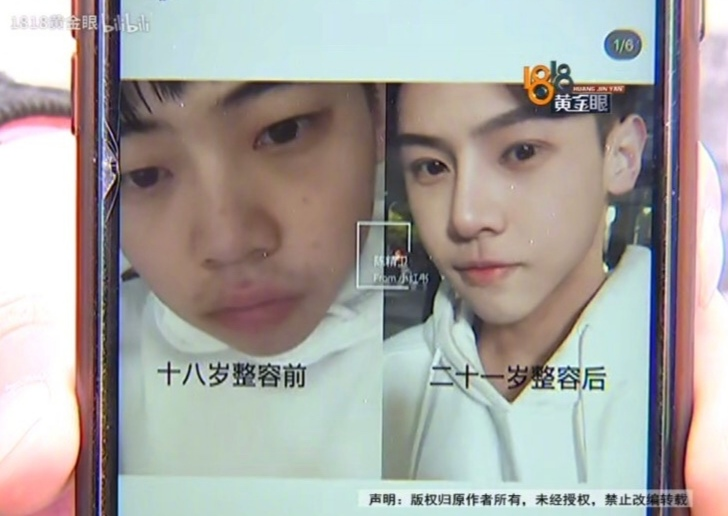 身着白衬衫的他向记者诉说自己遭遇的时候,弹幕里都是“帅”、“我可以”之类的虎狼之词。男团成员还有无法接受快递公司发货后才给出高额报价的小李。口罩给人距离感,但却没有封印他的眉、眼、鼻的美妙比例。以及6999元买了一双假“迪奥”的小丁。同样戴着口罩的他凭借高颜值也获得了男团席位。网友们总能在1818的镜头下发现一些俊男靓女。其中横店马拉松活动中被采访的热心市民朱先生,也是网友们意外收获的宝藏男孩。1818黄金眼男团主打的是上镜后“真实”的帅气,与之相对的,是巧用高超P图技术变帅的抖音诈骗男团。这位名为学长哥哥的网红帅吧!皮肤白皙,五官立体,棱角分明,笑起来犹如春风拂面甜到家,帅得我直呼好家伙。有网友质疑他修图,他回应道,这年代谁不美颜。但他承认的只是自己黑,皮肤差,眼睛有点怪,还放出了自己P图前后对比照↓