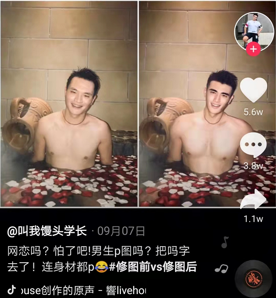 桃子考察了这几位网红的抖音,只能说这P图技术真是鬼斧神工。第一位翻车的学长哥哥被网友戳穿照骗的事实后,退网了一阵子,之后改了个名字转型成了P图博主,专门放P图过程。