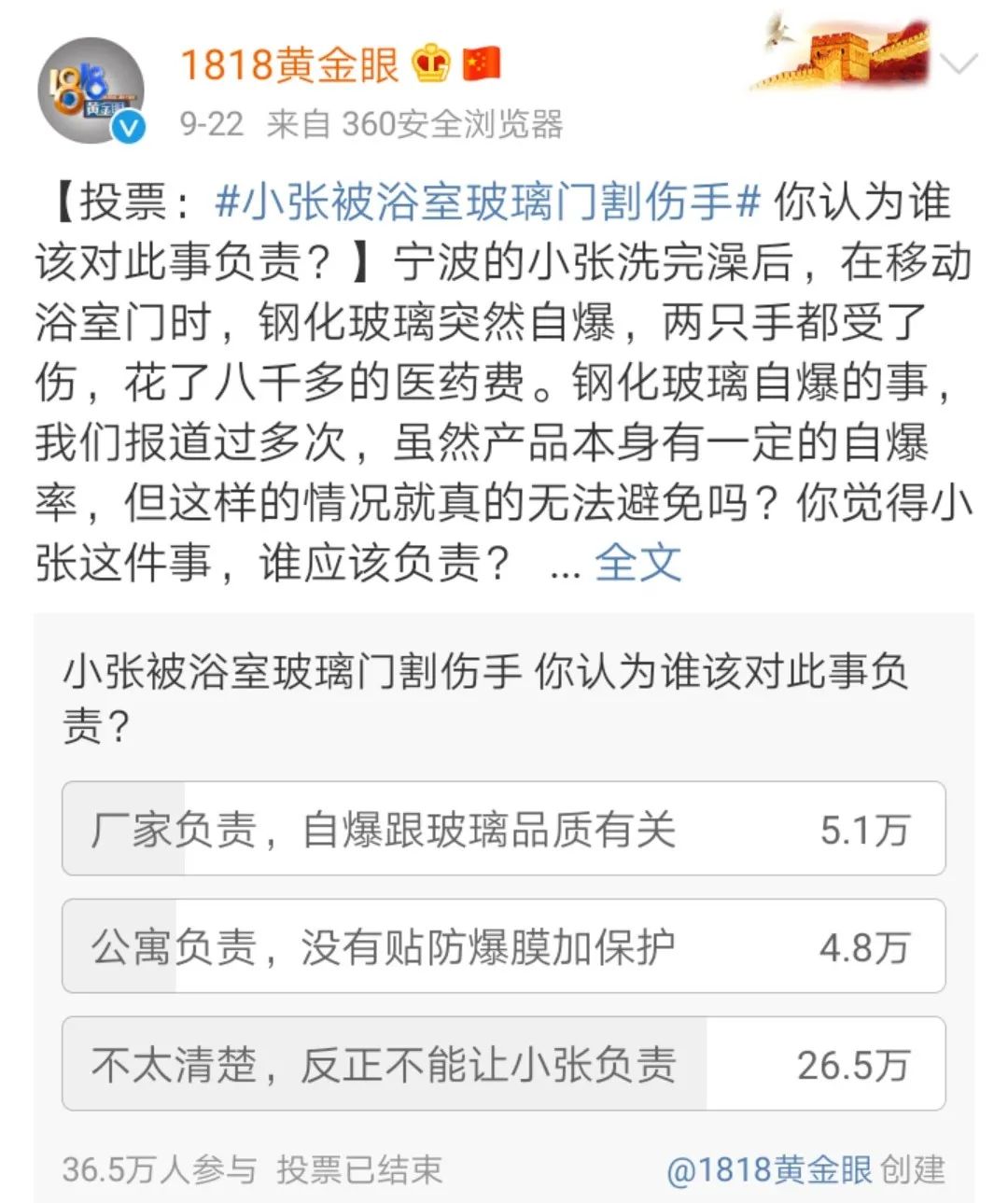 但如何做到把五官重塑成与自己本来样貌完全不搭噶的样子?又如何做到每次换头术都从不失手,不改变P后的样子?这些都得各位网红自己琢磨。经过多番P图才能换得点赞与关注的诈骗男团,很难获得死忠粉。因为一旦得知这些网红本来的面貌,粉丝会觉得自己被骗了,然后火速脱粉。1818黄金眼男团成员的出现,是因为一些纠纷,这些事件都非常的生活化,和大众的日常没有距离感。很多人家里的浴室门都是用钢化玻璃做的,而小张被爆炸的钢化玻璃伤到后,网友们会想到自家的浴室门有没有安全隐患,小张出事到底是谁的问题。而公寓方回应后,网友们更加怜爱小张,担心他能否维权成功。