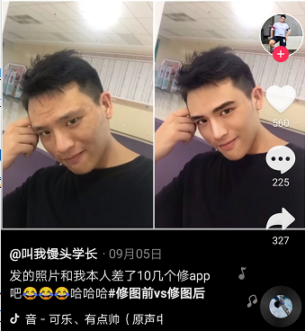 视频里动态的他们是怎样,生活中大概也不会差很多吧?这是大部分网友的想法。用镜头来检验一个真·帅哥/美女,或许是从网友们发现明星的精修图和官方视频里的差距太大,粉丝们纷纷用传说中的“生图”来安利自家偶像开始。又或许,是从大家发现如今的美颜滤镜太过夸张,网红们用得飞起全然忘记自己本来的样子,结果在直播时露出真容跑路开始。一部分抖音诈骗集团的小伙需要靠美颜、滤镜和音乐的加成,颜值和气质才能得到提升。- 抖音滤镜1.0 -