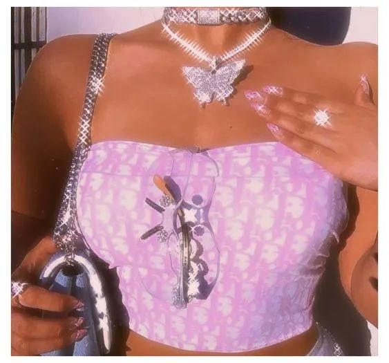 桃子曾经写过一次《》,深入剖析了健身网红的拍照秘学。Y2K辣妹风,和网红款辣妹类似,都具有超强的可复制性,做到以下几个小细节你就是当之无愧的辣妹本辣。对辣妹来说,穿衣打扮肯定是最重要的,你的身材可以不够“完美”,但成为辣妹,必须得有“老娘就是天下第一好看”的自信。根据我长期以来对Instagram上辣妹的观察,成为辣妹的第一步就是拥有超过闪闪发光的首饰,款式不重要,价格不重要,我们靠数量取胜。不在脖子上挂三四条闪瞎路人的假钻石项链,都不好意思出街。以及,你必须有一台塑料的诺基亚手机,这是进入千禧辣妹市场的通行证。再不济,也得是镶嵌了各种水钻的黑莓手机,2000年时谁拥有了黑莓手机,就是拥有了时尚的话语权。什么高级的性冷淡画风、莫兰迪色系,通通没有明度max的芭比粉来得痛快。芭比粉丝绒小短裙、芭比粉绸缎上衣搭配假皮草,OH,这呼之欲出的Y2K味儿。只要你穿上了带有大亮片的短裙,搭配一个《洛丽塔》同款红色墨镜儿,满手满耳垂的饰品一戴,瞬间就支棱起来了。