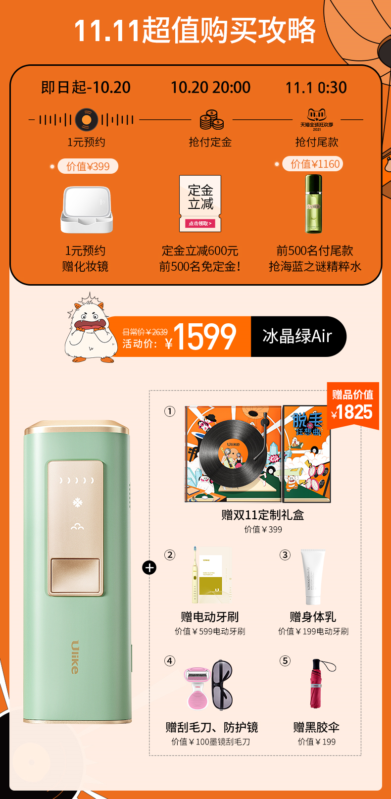 桃子之前给大家分享过不下10次这款脱毛仪,不少姐妹和粉丝都跟着入了之后都说香。最近Ulike出了一款双11限量礼盒,买蓝宝石脱毛仪还送黑胶唱片机!
