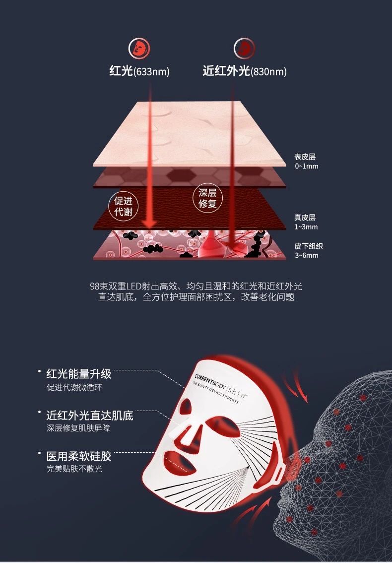 让你素颜也能保持容光焕发的状态,皮肤时时刻刻都像打了底一样。正处于同居生活的姐妹,真的不必再有素颜焦虑了!currentbody光子嫩肤仪从包装到内置都只能用一个词来形容——科技感。以至于桃子恍惚觉得自己在拆什么黑科技电子产品。打开产品的一瞬间桃子更是十分迷惑,这个美容仪怎么用呢?正面看就是一张的医用硅胶面膜,背面看里面装置了各种“光灯”,看起来太简单了吧,是不是还需要导入什么精华液才能用呢...于是桃子又翻了翻盒子里其他东西,除了美容仪充电宝(插上就可以随时随地用)、插头充电器,以及一个很高级的袋子外,真的什么也没有了...没错,currentbody光子嫩肤仪就是一个设计极其简洁的黑科技产品,没有普通美容仪繁琐的操作步骤,只需要插上充电宝开机,然后挂在脸上即可~整个过程只有10分钟,没有任何刺痛感或者不适感,你可以同时做着其他任何事(当然剧烈运动可能会掉)。操作如此简单的懒癌福音美容仪,到底是个什么原理呢?它真的有效吗?其实这个面膜美容仪和医美机构的光子嫩肤项目是同样的原理,都是利用红光+近红外光来帮助我们改善皮肤。从光学原理层面来讲,红光可以穿透皮肤的深层组织,增强血液以及面部细胞的微循环,从而促进肌肤新陈代谢和胶原蛋白再生。而近红外光则可以抵达皮肤更深层,修复我们的肌肤屏障。比如痘印、黑色素沉积等,近红外光都可以很好地解决它。所以光子嫩肤也是目前医美项目中最火的,因为它的适用大部分人群,并且功能非常全面,收敛毛孔、让皮肤更加水润和紧致,并且还能很大程度上改善痘印、黑色素不均匀导致的肤色不均、水油不平衡等问题。作为一枚曾经的痘痘女孩,桃子的素颜皮肤看起来真的不是很ok,毛孔粗大、痘印明显,痘印的黑色素沉积让面部肌肤看起来也不太均匀。但是碍于懒和心理成本高,桃子一直没有去医美机构处理它。而用currentbody光子嫩肤仪将近一个月,桃子的皮肤肉眼可见得好了许多,皮肤不仅毛孔细小了许多,最恼我的痘印淡了许多,这效果来得比桃子勤勤恳恳用大牌护肤品来得明显太多,素颜见人也多了几分自信,还是要继续坚持坚持~So,这个currentbody光子嫩肤仪整个流程操作是什么样的呢?但是你可能没想到它简单到过分,1次只需要花费你10分钟,并且解放双手双脚,一边“敷面膜”一边做个帕梅拉也可以~