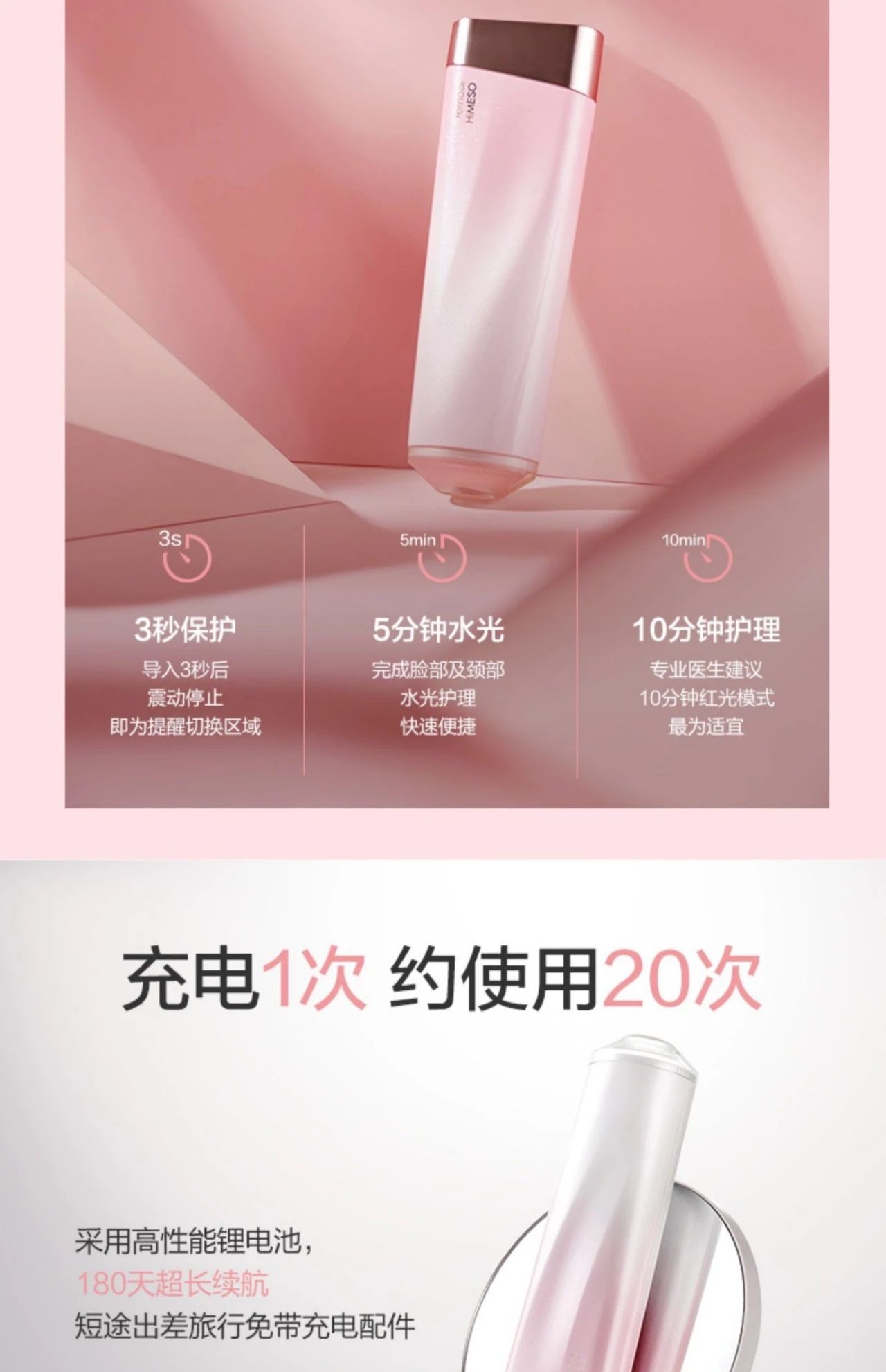 而且操作简单方便,做完全脸只要5分钟,除此之外,还有红光+红外光嫩肤功能,采用特殊波长的光照,可以帮助快速抑制肌肤炎症,促进恢复,还能达到嫩肤、平细纹、缩小毛孔的效果。