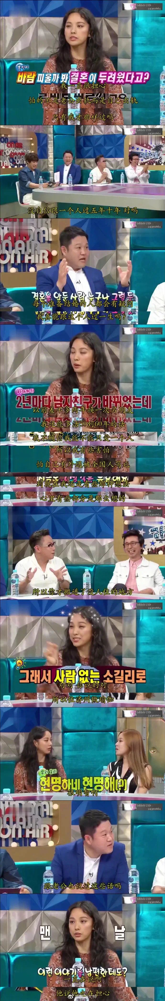 她认为感情不该用道德标准来束缚,她对出轨这件事看得非常正常,认为出轨是一种非常正常的人性作用的结果。她婚后和老公搬到济州岛生活,一方面原因就是担心自己会出轨。而如果老公出轨,她也认为是一件非常正常的事,会祝福他然后走开...