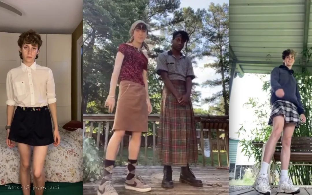 他让我想起前不久Jorge Garay发起的一个鼓励男生穿裙子的线上趋势,其中有不少男生穿裙子出镜↓